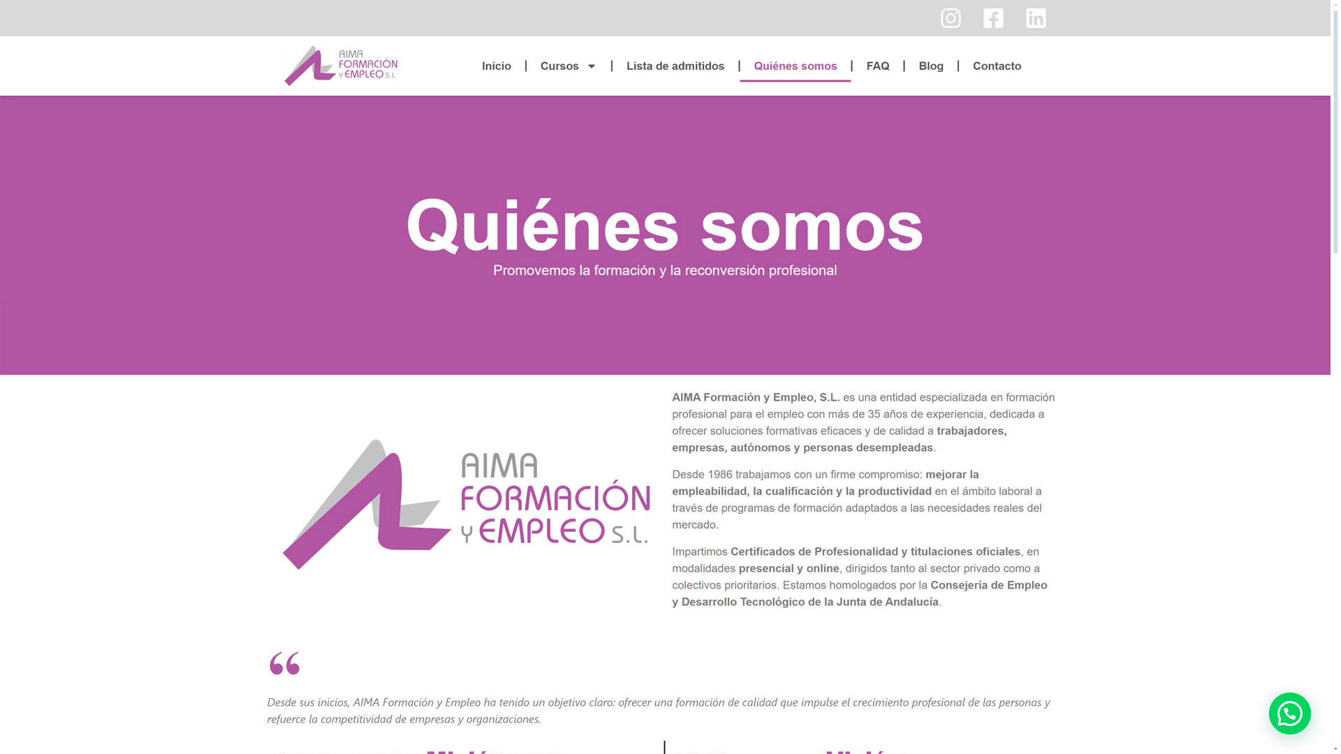 Para AIMA Formación y Empleo desarrollamos un sitio web corporativo orientado a presentar su oferta formativa y facilitar la captación de alumnado interesado en cursos para el empleo y certificados de profesionalidad.
